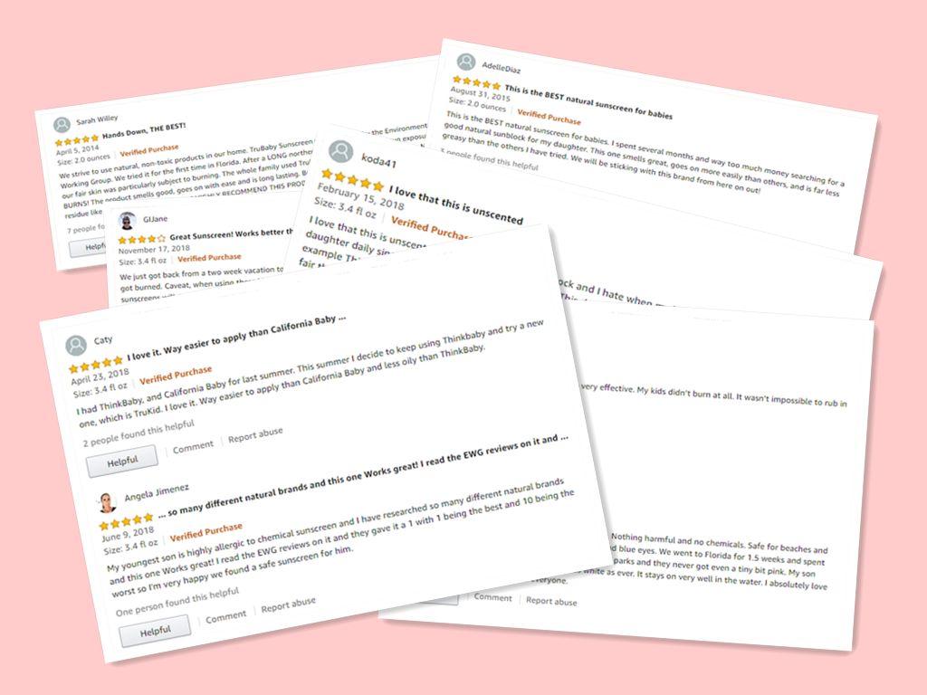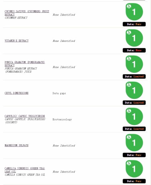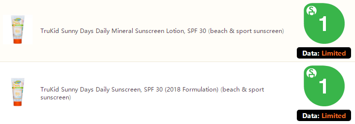 在美國護膚用品評測的網(wǎng)站EWG上,Trukid的系列防曬霜各種用料的級別都是1,屬于低風險的級別。