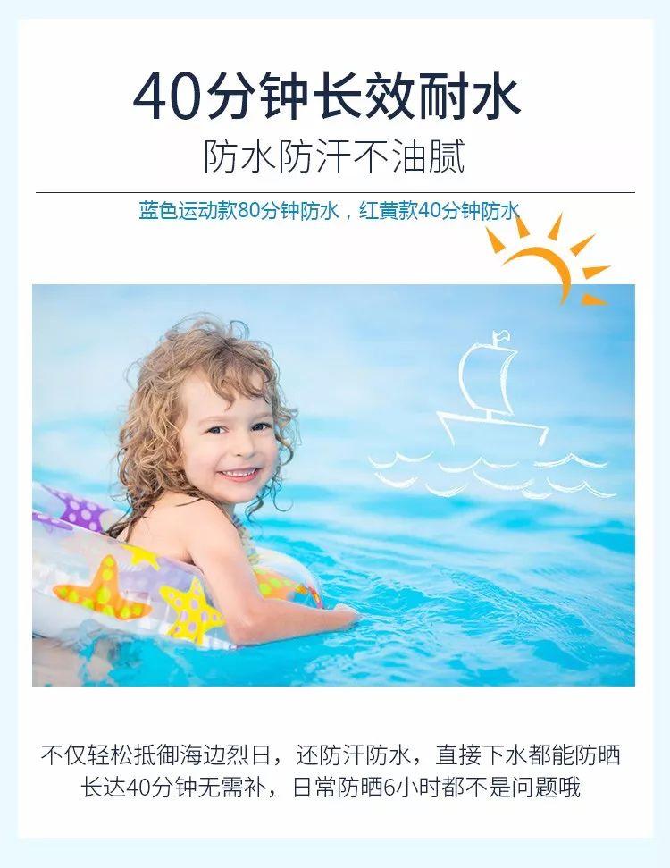 Trukid紅色日??詈忘S色抗敏款的防水時間都是40分鐘,所以在碰水出汗的情況下,40分鐘要記得給孩子補涂一次,如果沒有出汗碰水就不需要那么頻繁哦~