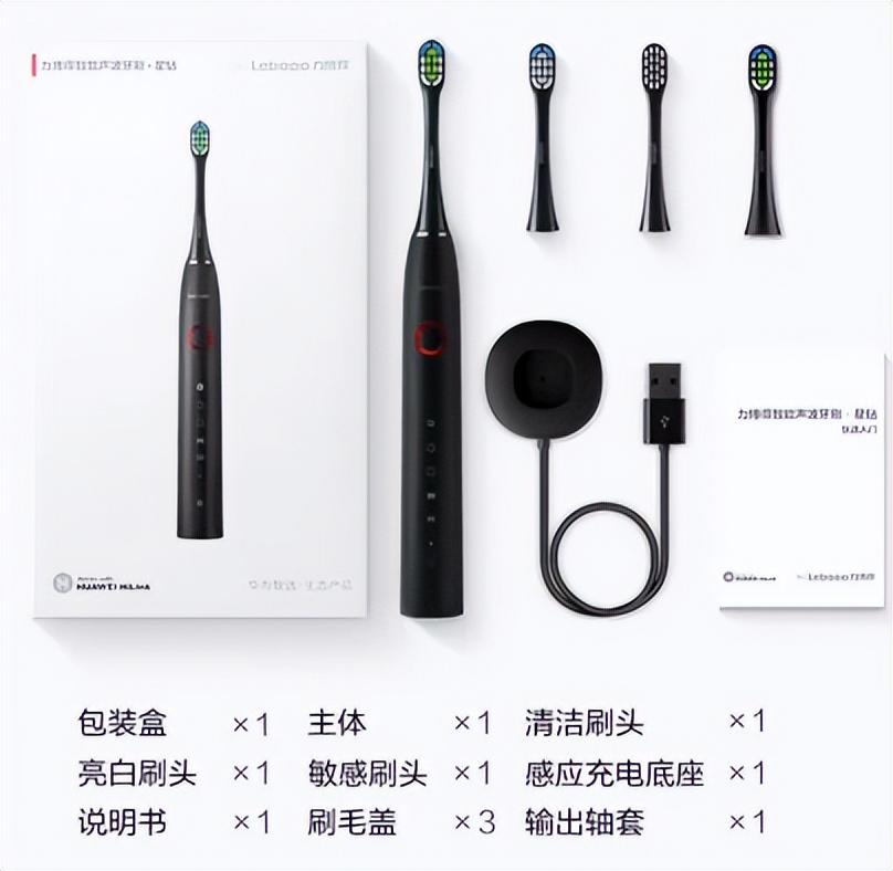 標(biāo)配三款刷頭,分別是清潔、亮白和敏感刷頭,滿足不同牙齒情況的小伙伴。