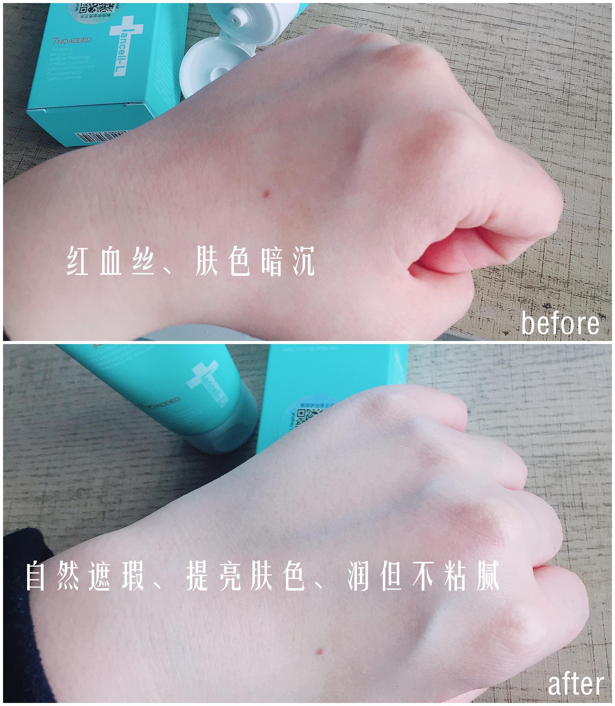 這款防曬雖然是清爽型,但絕不是搖搖樂般的稀質(zhì)地,也不至于粘稠到推不開,涂在手上的感覺很水潤,因?yàn)橛杏椭?,所以不?huì)有流動(dòng)感(建議大家不管油皮,還是干皮,日常防曬好不要選過稀質(zhì)地的,那種防曬雖然很容易抹開,但不出一個(gè)小時(shí)就會(huì)拔干)這款質(zhì)地不黏膩,很好推開,推開瞬間就吸收了,而且涂完肌膚潤潤的,不會(huì)泛油、不悶痘,后續(xù)再抹BB霜或者上妝,完全不會(huì)卡粉,不搓泥(這是我們顧客大愛的原因之一!)