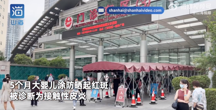 圖源:山海視頻皮膚科醫(yī)生檢查后發(fā)現(xiàn),起紅斑的地方是孩子涂防曬霜的地方,紅斑正是由于防曬霜刺激引發(fā)的過敏。經(jīng)過醫(yī)生診斷,孩子被確診為接觸性皮炎。