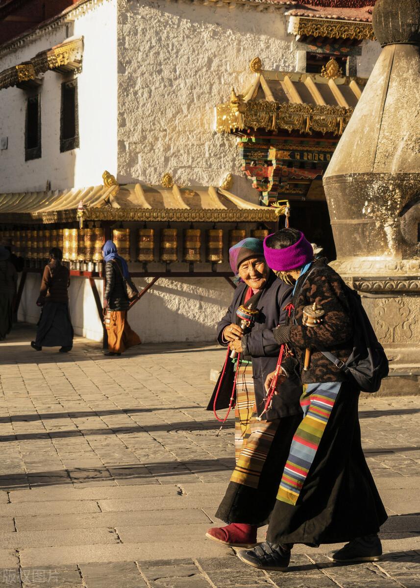 在遇到寺院、瑪尼堆、佛塔的時候,要從左往右繞,轉經(jīng)筒是要順時針轉,但信仰苯教則與之相反。