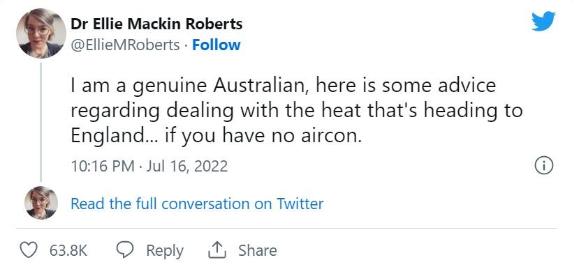 身經(jīng)百戰(zhàn)的澳洲人這幾天當(dāng)起了英國人的靈魂導(dǎo)師,在各大社交媒體上教他們怎么不被熱死。