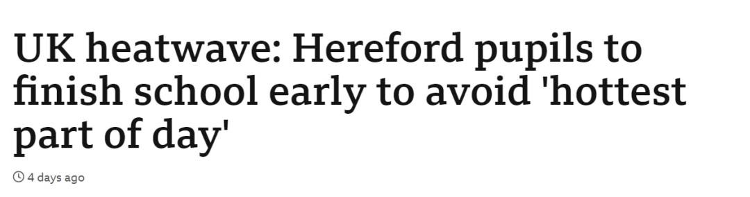 謝謝了,看到這個告示確實不太想出門。周一,人們返回公司和學(xué)校,高溫變得更加難以忍受起來。擁有50萬名工人的工會The GMB向政府呼吁,氣溫超過25度就不應(yīng)該讓工人干活,政府需要設(shè)定一個法定的高工作溫度。