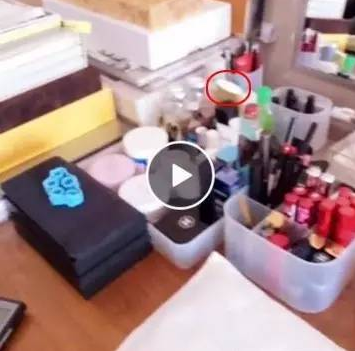 再看看天后王菲這熟悉不過的梳妝臺,雖然圖片模糊,但還是能捕捉到安耐曬的身影。