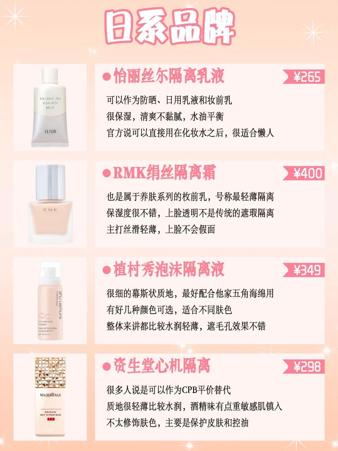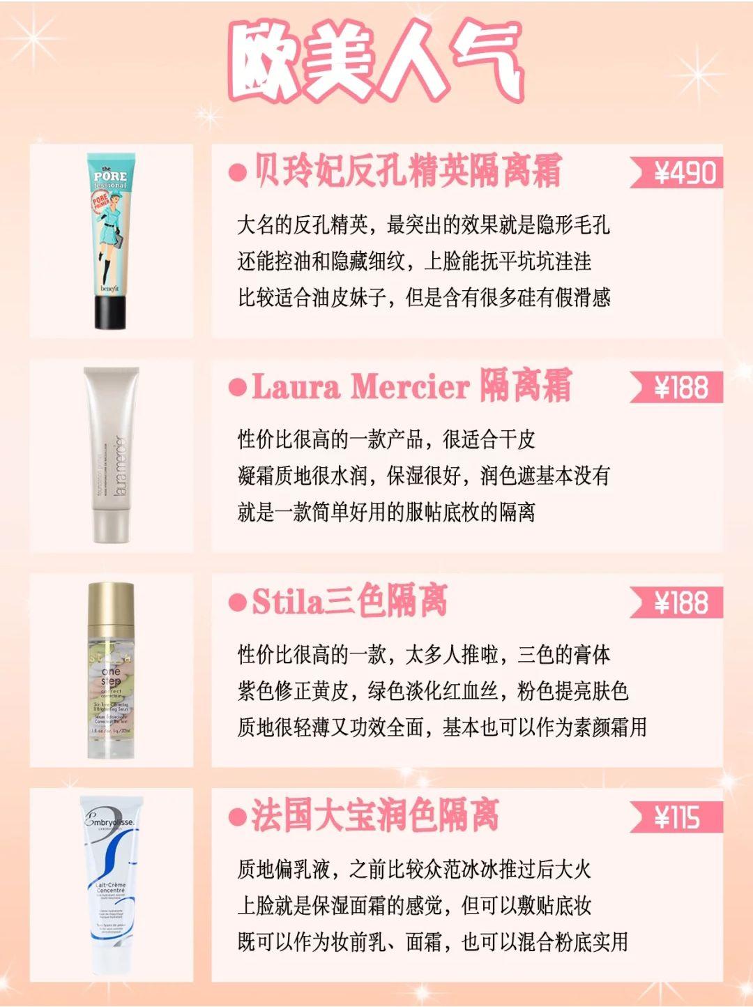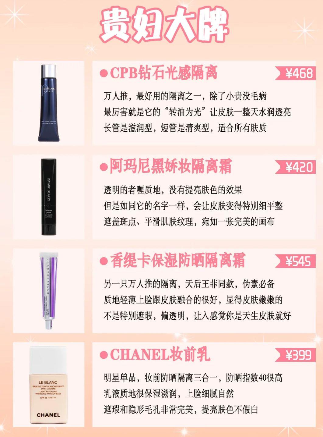 隔離霜和防曬霜其實是同種產品,只是叫法不同,如果隔離霜含有防曬的成分,那它就是一個防曬霜,如果連防曬成分都沒火達之器有,那它基本就沒有什么作用,因為隔離霜根本就沒有商家宣傳的能隔離空氣,臟東西的功。要問哪個品牌好呢,其實這個也不一定的,每個品增鄉(xiāng)采編黃牌都會有很好的產品的,只是適不適合自己的皮膚罷了,因此要根據自己的膚質去選擇產品,而不是看品牌,貴的東西不一定好,好的東西底參歷也不一定貴,重要是要選擇合適自己的。整理了一些目前比較火的32款隔離霜妝前測評!以及一些關于隔離霜/妝前乳的干貨,給大家參考一下,覺得有用的記得點贊收藏哦!