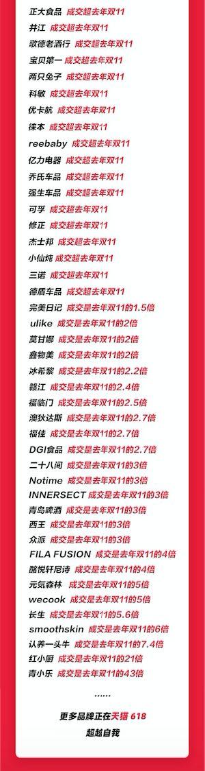 更多品牌正在天貓618不斷超越自我。史上大規(guī)模的天貓618正在給品牌帶來雙11量級的增長,給品牌持續(xù)注入新的爆發(fā)動力。