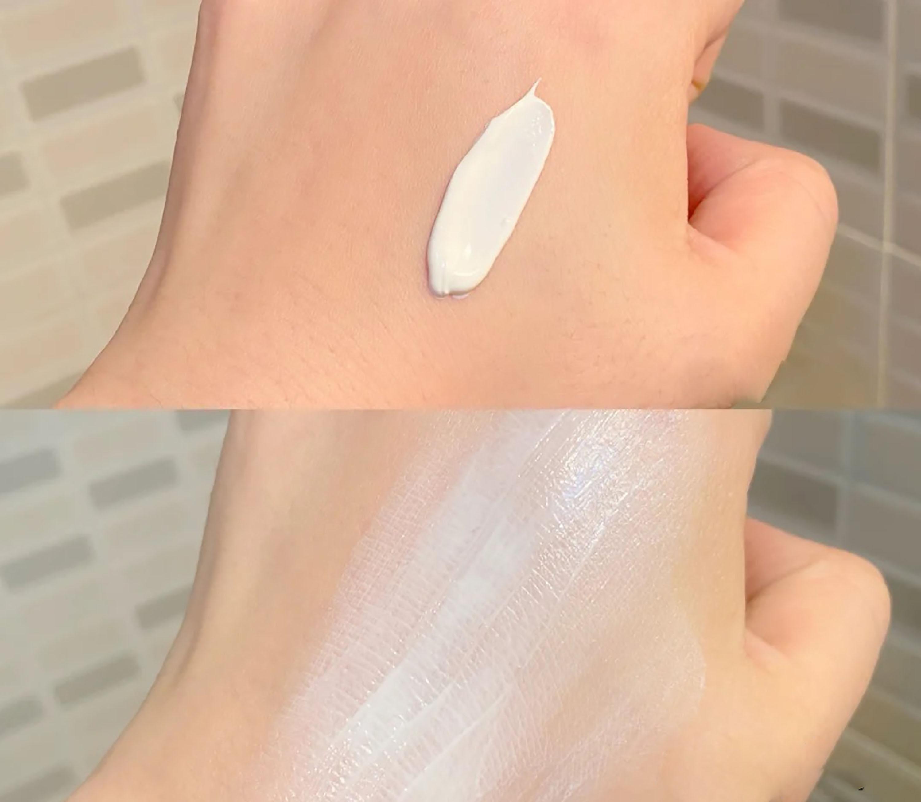 它的質(zhì)地偏乳霜狀,推開后還蠻水潤的,但是一點都不會覺得油膩,對皮膚沒有負(fù)擔(dān),膚感真的很棒。不會搓泥也不會拔干,也不影響后續(xù)上妝,任何膚質(zhì)都能夠使用。