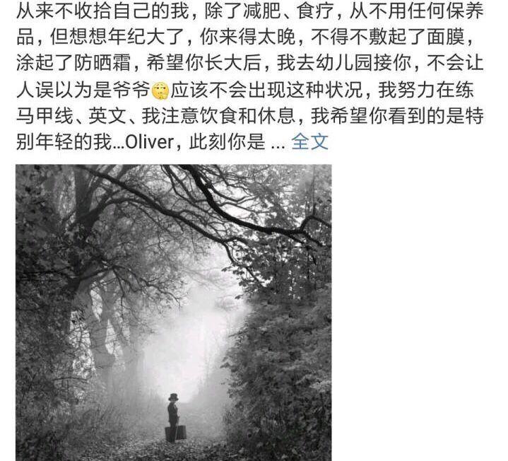 “從來不收拾自己的我,不得不敷起了面膜,涂起了防曬霜,希望你長大后,我去幼兒園接你,不會讓人誤以為是爺爺?!?/p>
