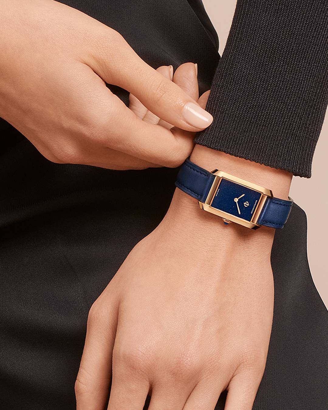 漢伯頓系列承襲名士制表世家一貫的藝術(shù)審美精神,以Art Deco裝飾藝術(shù)為創(chuàng)作靈感,展現(xiàn)矩形表殼的簡(jiǎn)潔線條和曲線設(shè)計(jì),推出色彩鮮明,酷颯中性風(fēng)格的女性腕表新作。鋼框酒紅色和金框深藍(lán)色兩款,是鐘情精致俐落外形和極簡(jiǎn)主義女性的至臻之選。