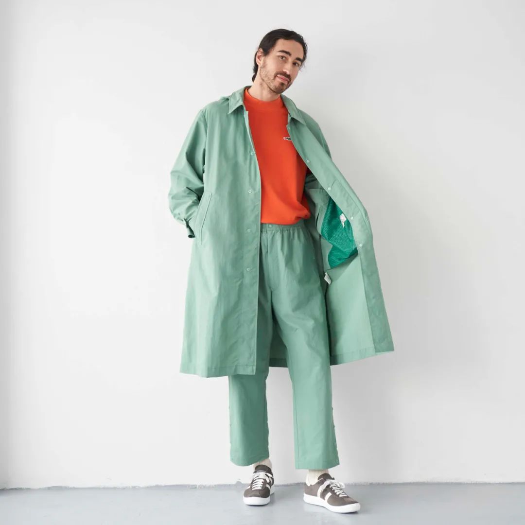 還原傳統(tǒng)高規(guī)格生產(chǎn)標(biāo)準(zhǔn),在設(shè)計(jì)中增加現(xiàn)代元素及細(xì)節(jié),類似雨衣外形的大衣,亦擁有低飽和薄荷綠配色,可用來搭配高亮衛(wèi)衣等單品。