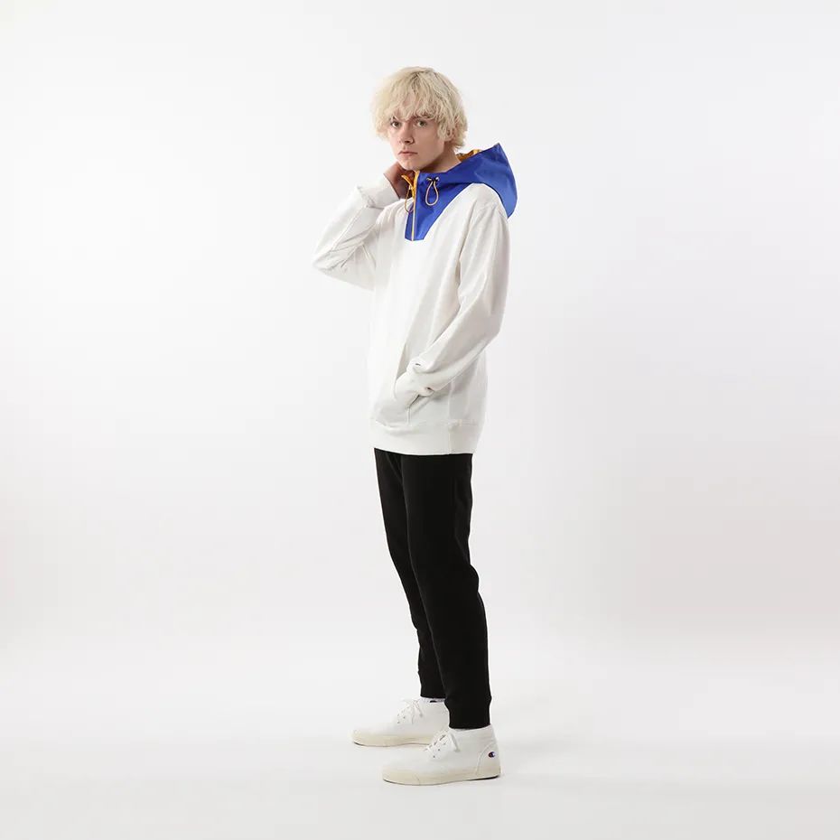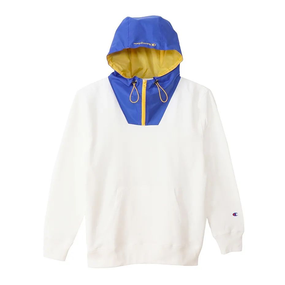 Champion 連帽衛(wèi)衣的知名及受眾度無需多講,亮點(diǎn)在于帽子和領(lǐng)口位置的變化,由戶外裝備常用的尼龍材料制成,并附有拉鏈和抽繩。