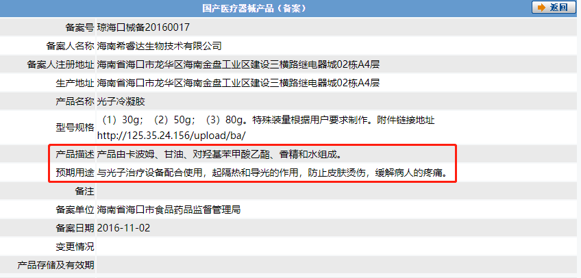 從產(chǎn)品描述來看,成分很簡單,其中沒有任何防曬成分;從用途來看,是配合醫(yī)美光子調(diào)節(jié)設(shè)備使用,隔熱導(dǎo)光,防止皮膚燙傷。