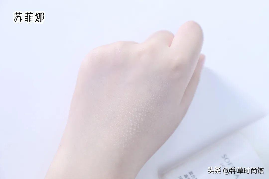 一般純物理防曬都比較厚重,這款是霜狀質(zhì)地,不太好涂勻,但是成膜速度還是比較快的,不悶?zāi)槻挥湍?,干皮油皮都適合。