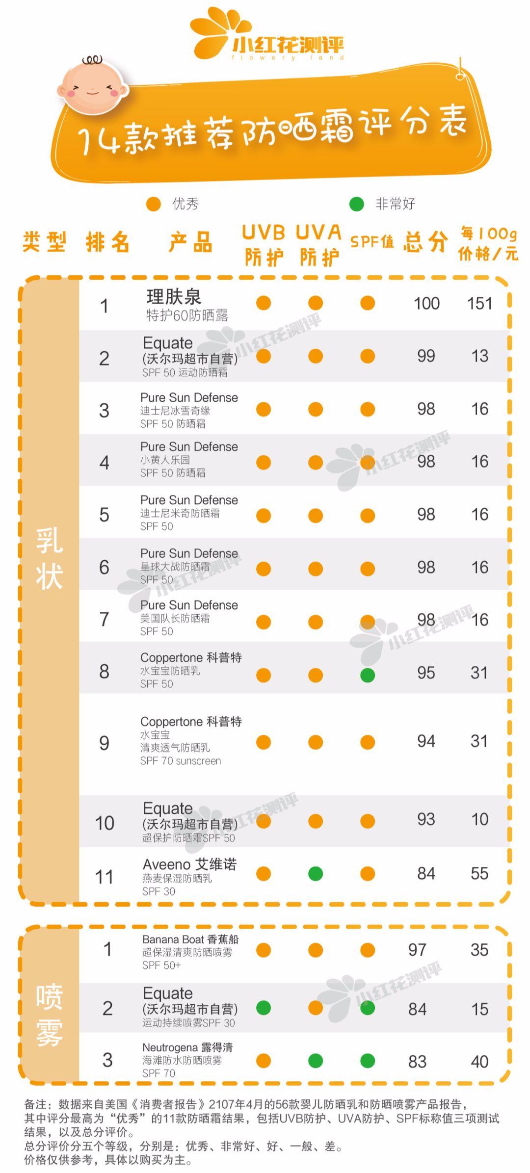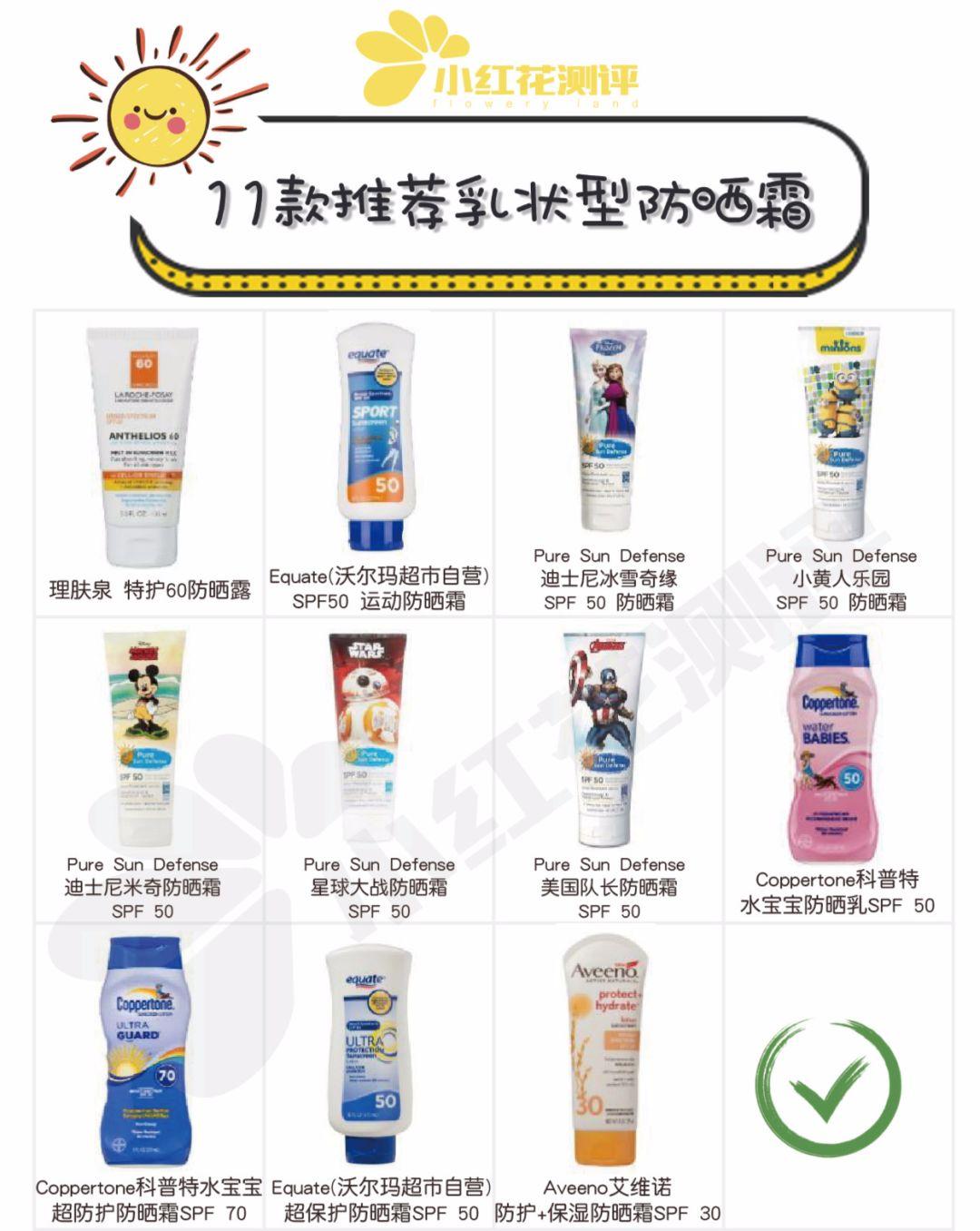說完問題,下面,小紅花測評將測試中被被評為“”的11款乳狀型和3款噴霧型寶寶防曬霜的圖片及產品名稱清單列出來了,供爸媽們看清選購。