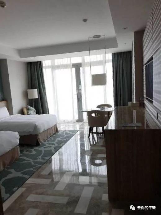 我訂的是雙床房,分別和老公一人帶一娃睡覺,不用加床,1.4m*2,睡得比較舒服。房間比較大,裝修風(fēng)格和其他國際五星酒店差不多,跟迪拜古波斯、古巴比倫風(fēng)不太一樣。