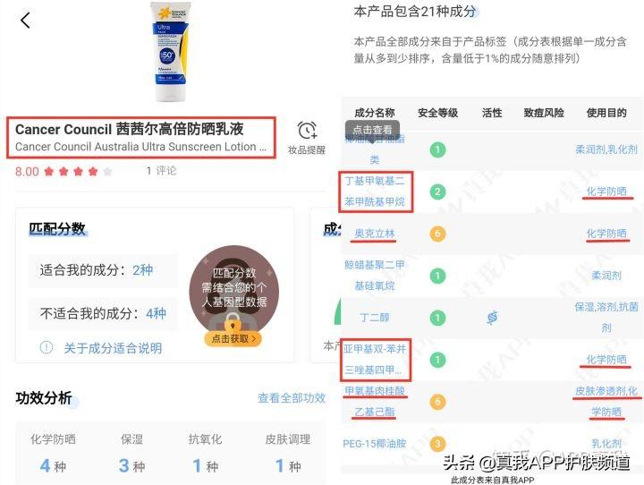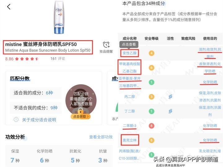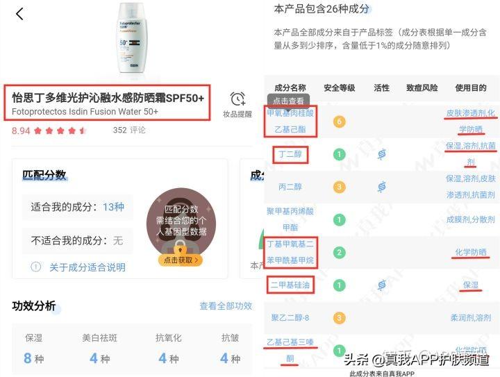 從真我APP上查詢的成分表來看,主要為功成分就是保濕。雖然兼具物理防曬和化學防曬,但以化學防曬為主,不會出現(xiàn)泛白。丁二醇高鎖水保濕,還抑菌消炎。