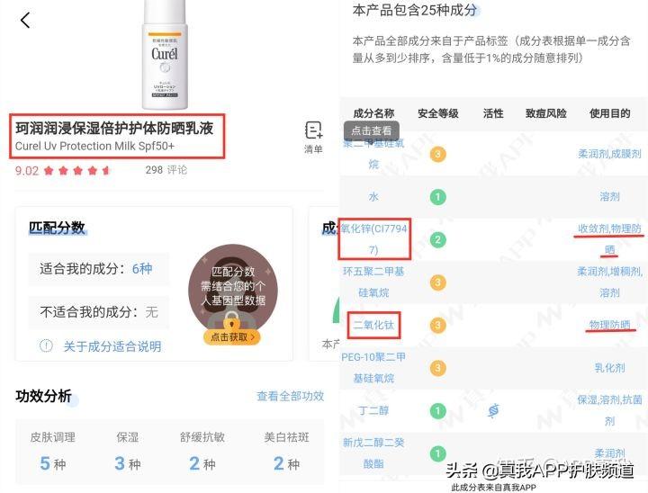 從真我APP查詢的成分來看,變性乙醇的含量很大,難怪小編能聞到味道。但是化學防曬添加了六種,物理防曬也有一種但是沒有泛白感覺,使用感還是很輕薄的。雖然是物理防曬和化學防曬兼具,但是只有一點提亮果,完全不泛白。而且六種化學防曬劑,也說明了防曬功能強。