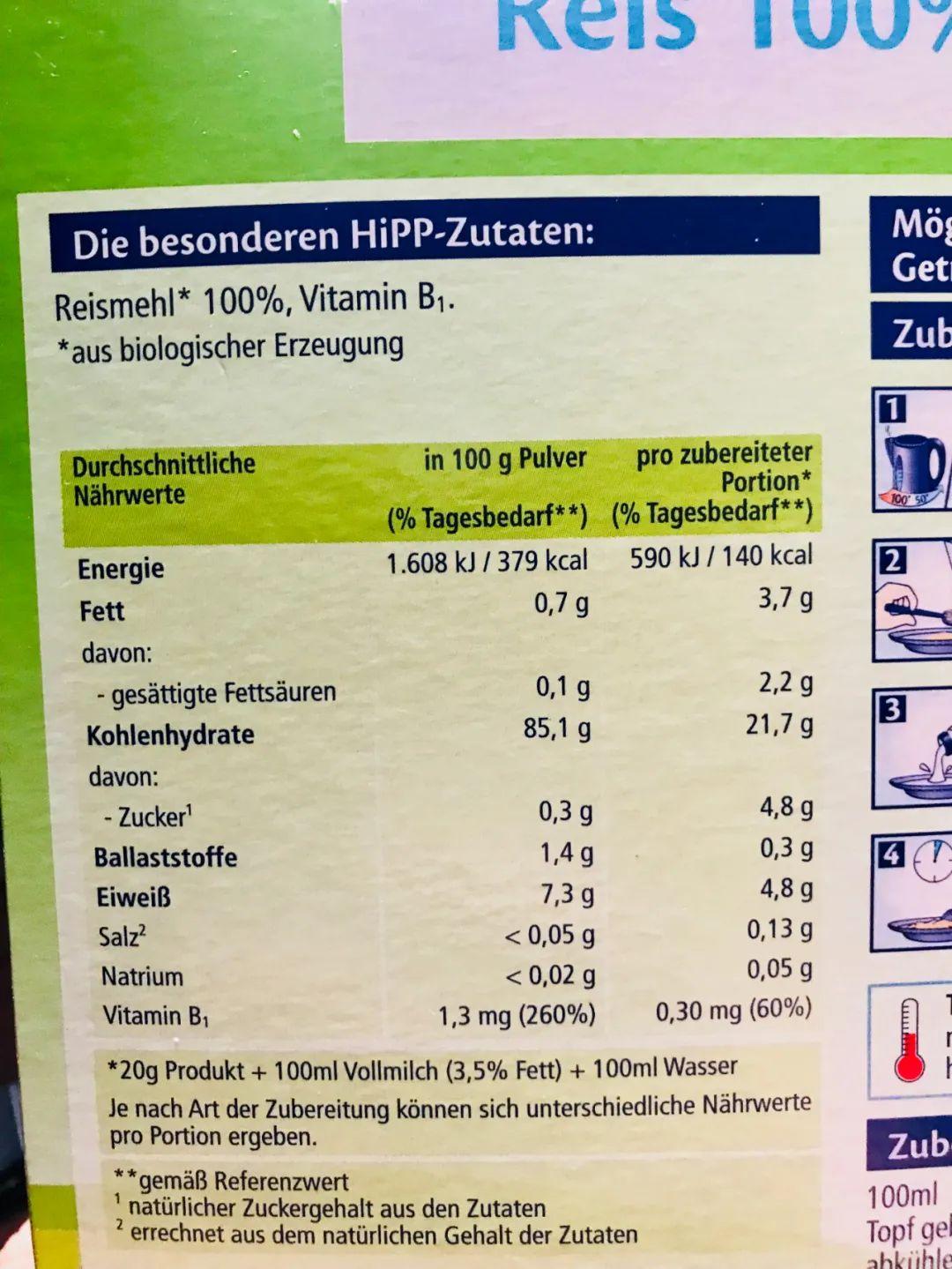 后再提醒一下大家,德國喜寶原味大米粉沒有經(jīng)過鐵強(qiáng)化!美國禧貝有機(jī)糙米米粉按推薦食用量鐵含量低!前者好配合其他含鐵輔食輪流吃,后者好根據(jù)實(shí)際情況加大每餐食用量。