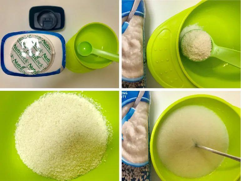 罐裝米粉,打開和量取比較方便。開罐后無米香味,米粉顆粒略粗,呈片狀。沖調(diào)后米粉質(zhì)地細(xì)膩程度中等,偏稀一點(diǎn)。入口有米香味和甘味。