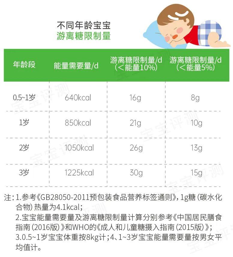 但《中國居民膳食營養(yǎng)素參考攝入量(2013版)》和《中國居民膳食指南(2016版)》均未給3歲以下的寶寶設(shè)定添加糖的限制攝入量。