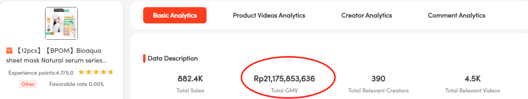 今年 6 月以來,BIOAQUA 的 TikTok Shop 銷量與銷售額都排在印尼小店榜前列。據(jù)第三方數(shù)據(jù)平臺 Tichoo 統(tǒng)計,其爆款面膜從 2021 年 11 月上線以來銷售額已經(jīng)累計約 847 萬人民幣。更重要的是,BIOAQUA 成為了一個被多數(shù)人認(rèn)為從 0 到 1 在 TikTok 上打出品牌的案例。