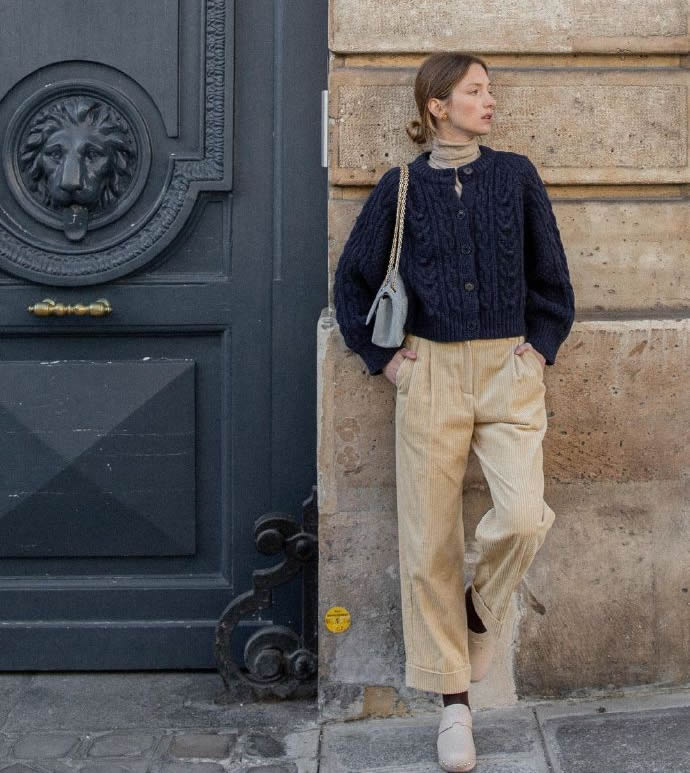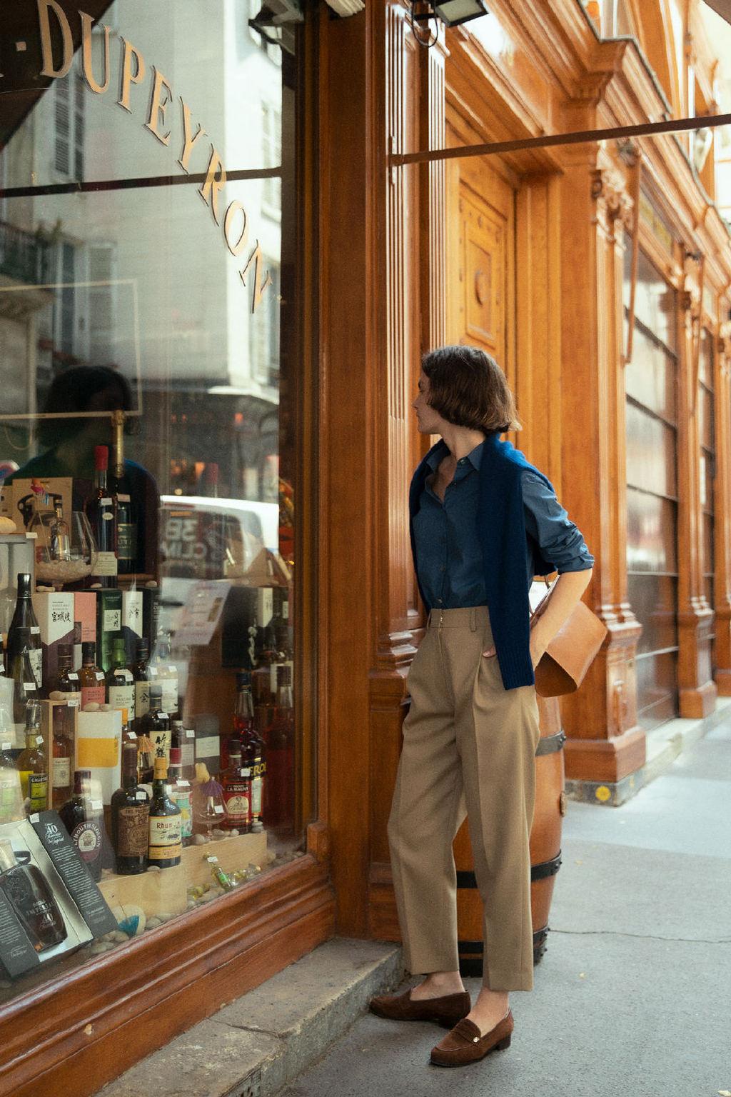 深藍(lán)襯衫搭配卡其褲,知性干練毫不猶豫。為了營(yíng)造逛街的隨意,來(lái)一款深藍(lán)針織衫疊穿吧,輕輕一披,就是大時(shí)髦啊。