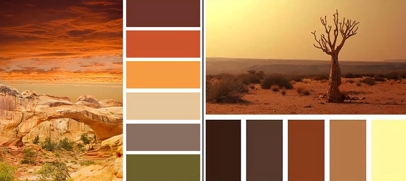 廣義的大地色系,還有河川草木的顏色。日出日落,陽(yáng)光落在山川巖石上是大地色;清晨日暮,河流淺灘的石頭色也是大地色;