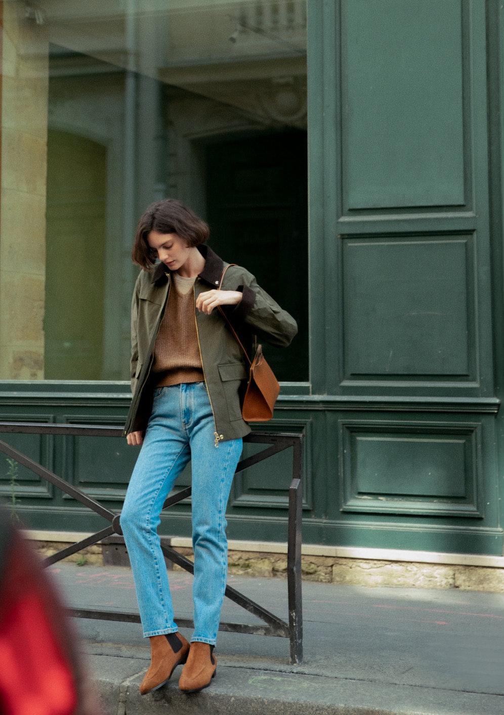 材質(zhì)對(duì)比營(yíng)造的層次,顯而易見。光澤皮革與普通面料的博弈,反光差異之下格外。皮質(zhì)柔軟細(xì)膩,少硬朗,保溫柔,乃是法式風(fēng)成功的精髓。