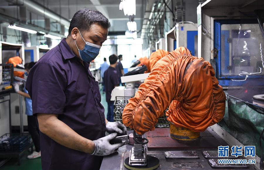 這是位于廣東東莞長安鎮(zhèn)的華茂電子集團的手機殼生產(chǎn)車間(7月16日攝)。 新華社記者 鄧華 攝