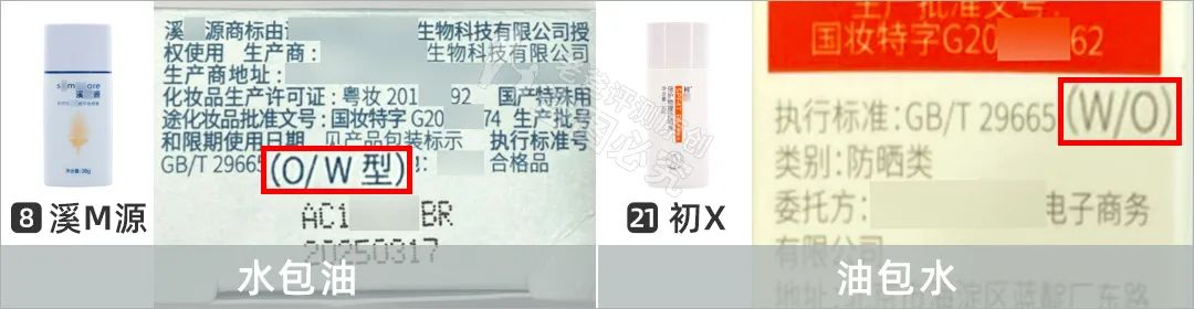 這里還有個(gè)小知識(shí)點(diǎn):國產(chǎn)品牌防曬霜包裝上可以找到執(zhí)行標(biāo)準(zhǔn):GB/T 29665,注意看后面括號(hào)里的字母。如果是(O/W)則為水包油型,反之,(W/O)則為油包水型。