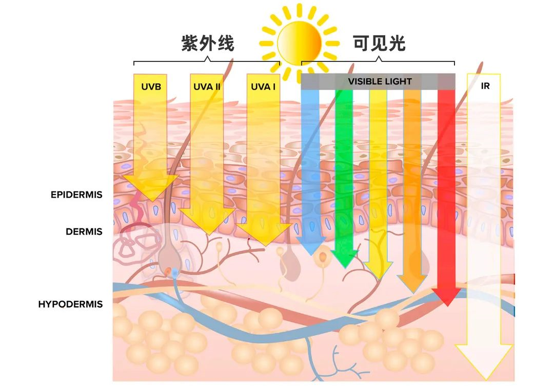 可見光導(dǎo)致皮膚中產(chǎn)生大量的自由基,自由基的氧化反應(yīng)生成黑色素,所以!你就黑了!
