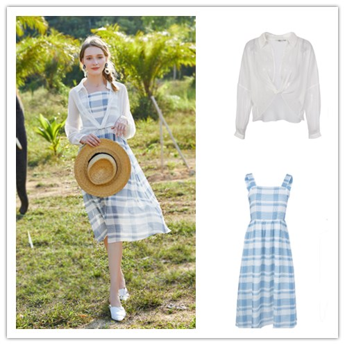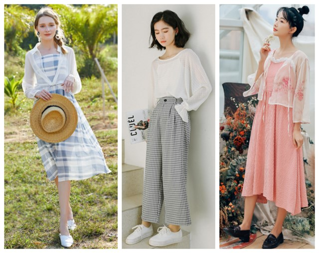 第一款給大家推薦的搭配是具有春夏氣息的格子裙+襯衫款防曬衫,淺藍(lán)色的格子背心裙清新脫俗,十分具有春天明媚的氣息,再加上微微反光的薄紗防曬襯衫,整個人在陽光下會有一種熠熠生輝的感覺,仙氣十足,不管是什么年齡段都可以嘗試一下這種風(fēng)格的搭配哦!