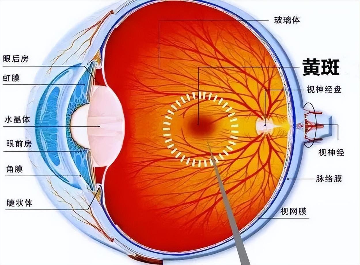 黃斑位于視網膜中央,分布著大量的視覺細胞,是視力敏感區(qū),我們能夠感受到光,看清楚事物的顏色、形狀、深淺、距離等,都離不開它。