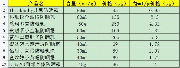 5、價(jià)格方面貴:資生堂藍(lán)胖子、黛珂,適中:安耐曬、怡思丁,便宜:Thinkbaby、蜜絲婷、EltaMD。