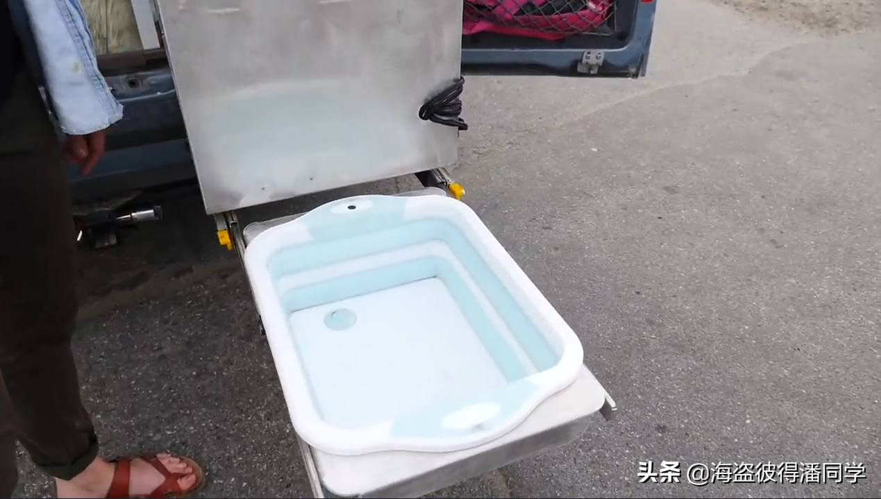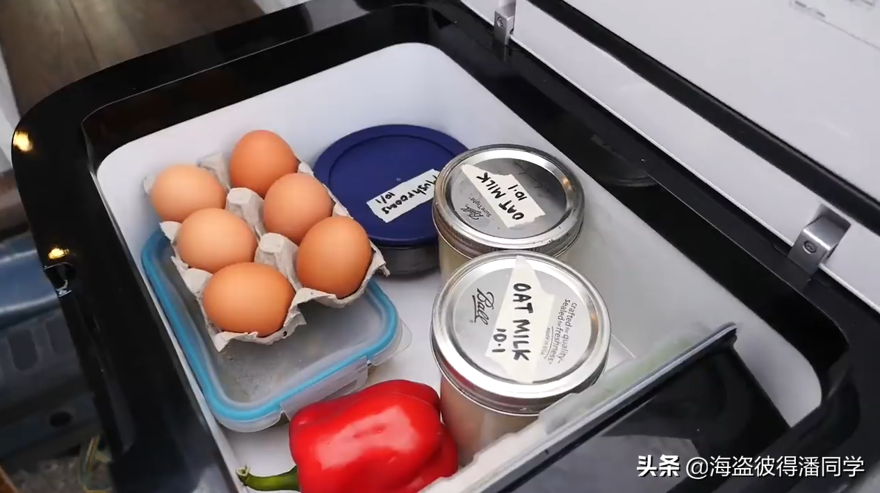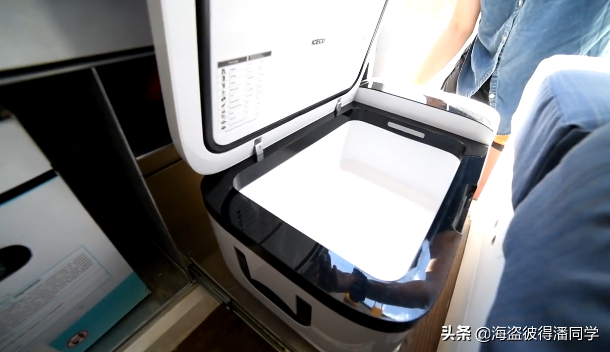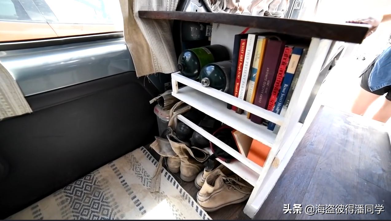 先開始的是鞋柜,因為在北美戶外生活豐富,作為車主不能不兼顧到自己的戶外生活,多雙不同功能的鞋子是剛需,自然需要鞋柜。鞋柜在櫥柜的盡頭,右側側滑門的門口,上門可以放鞋,后門上車也方便換鞋。
