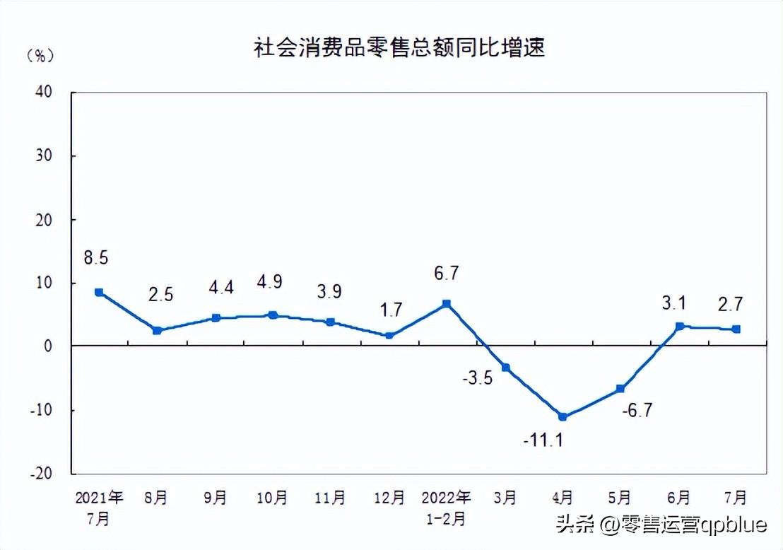 7月社會(huì)消費(fèi)品零售總額35870億元,同比增長(zhǎng)2.7%