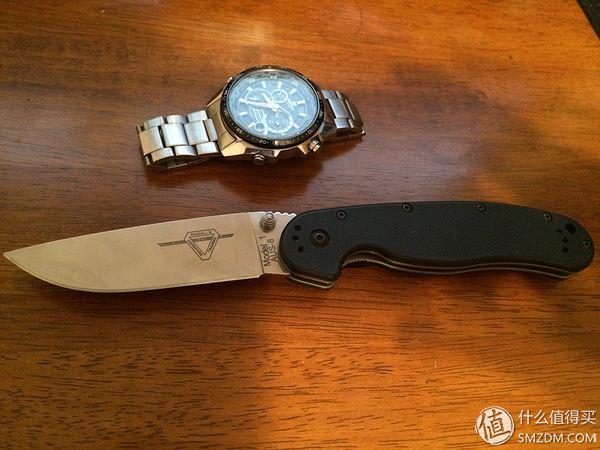 從國內(nèi)帶的三刃木丟了,根據(jù)各種評(píng)測買了一把折刀,亞馬遜五星好評(píng),材質(zhì)很好,刀很鋒利,就是太大了。掛在褲兜里,感覺褲子都被它拽掉了。