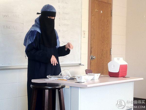 入學(xué)之前的英語課同學(xué)。沙特同學(xué),名字忘了,我還和她說了幾次話,英語不錯(cuò),挺愛學(xué)習(xí),要不然也沒啥事干啊,在他們女人不允許工作,開車,不允許自由戀愛,成天逛商店和女性朋友開party也挺沒意思的?,F(xiàn)在想起來她找我說了幾次話,她丈夫或者父親沒用ak47把我打成篩子真是我的運(yùn)氣啊。閱讀老師,美國老頭,挺不待見她的,經(jīng)常不把作業(yè)試卷親自放到她桌子上,其他人老師都放到桌子上,宣稱我沒法只憑看人的眼鏡區(qū)分學(xué)生(我們班還有個(gè)蒙面的女生)。后來在大學(xué)里見過包頭巾的,也叫hijab,但是沒也沒見過這種包嘴的(niqab)。