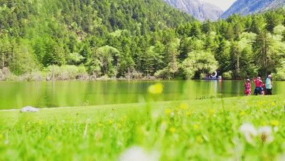遠處雪山與花草相融,群山密林間不經(jīng)意間形成的清新花毯,在這樣的美景下就適合找個地方,靜靜坐著發(fā)呆,便很美好。
