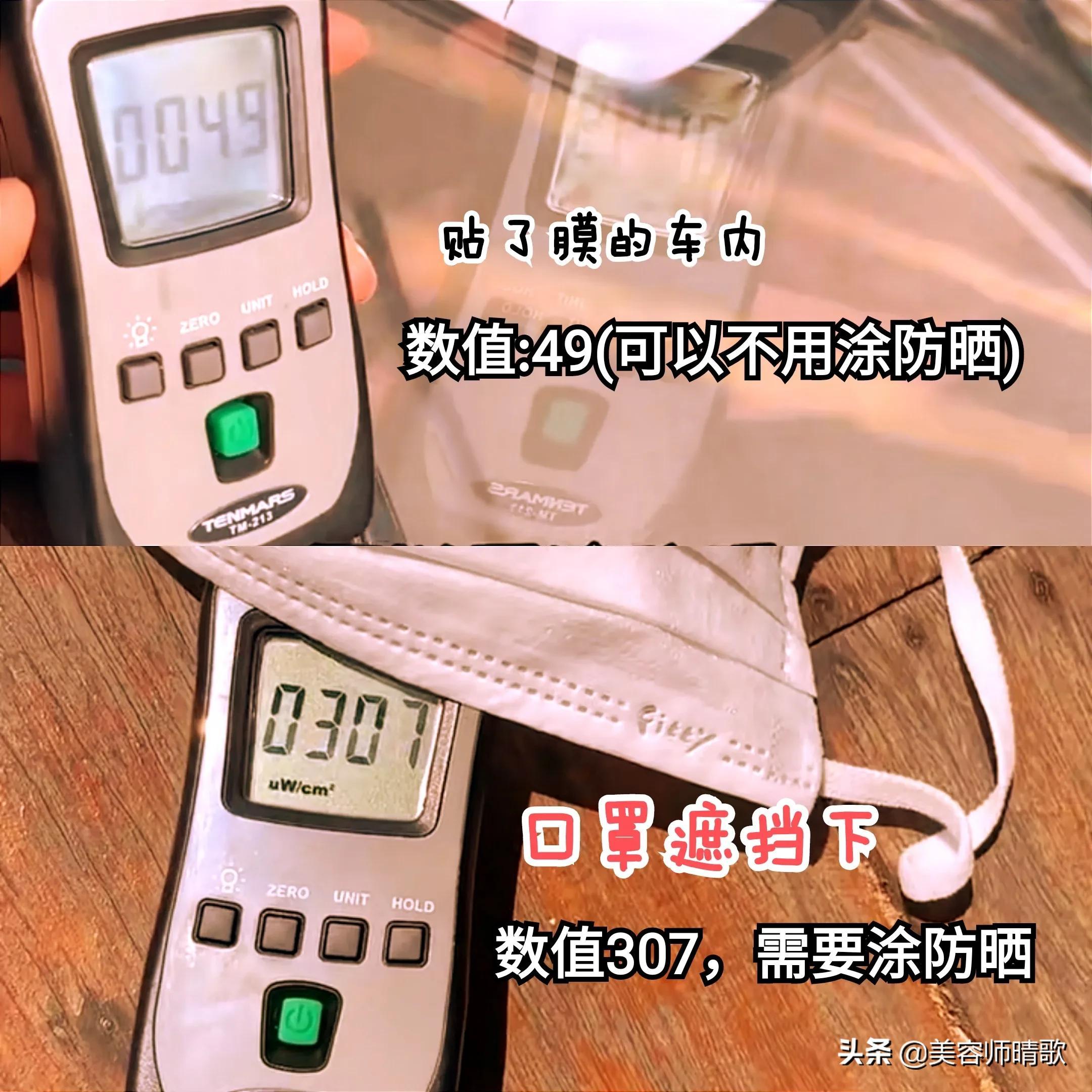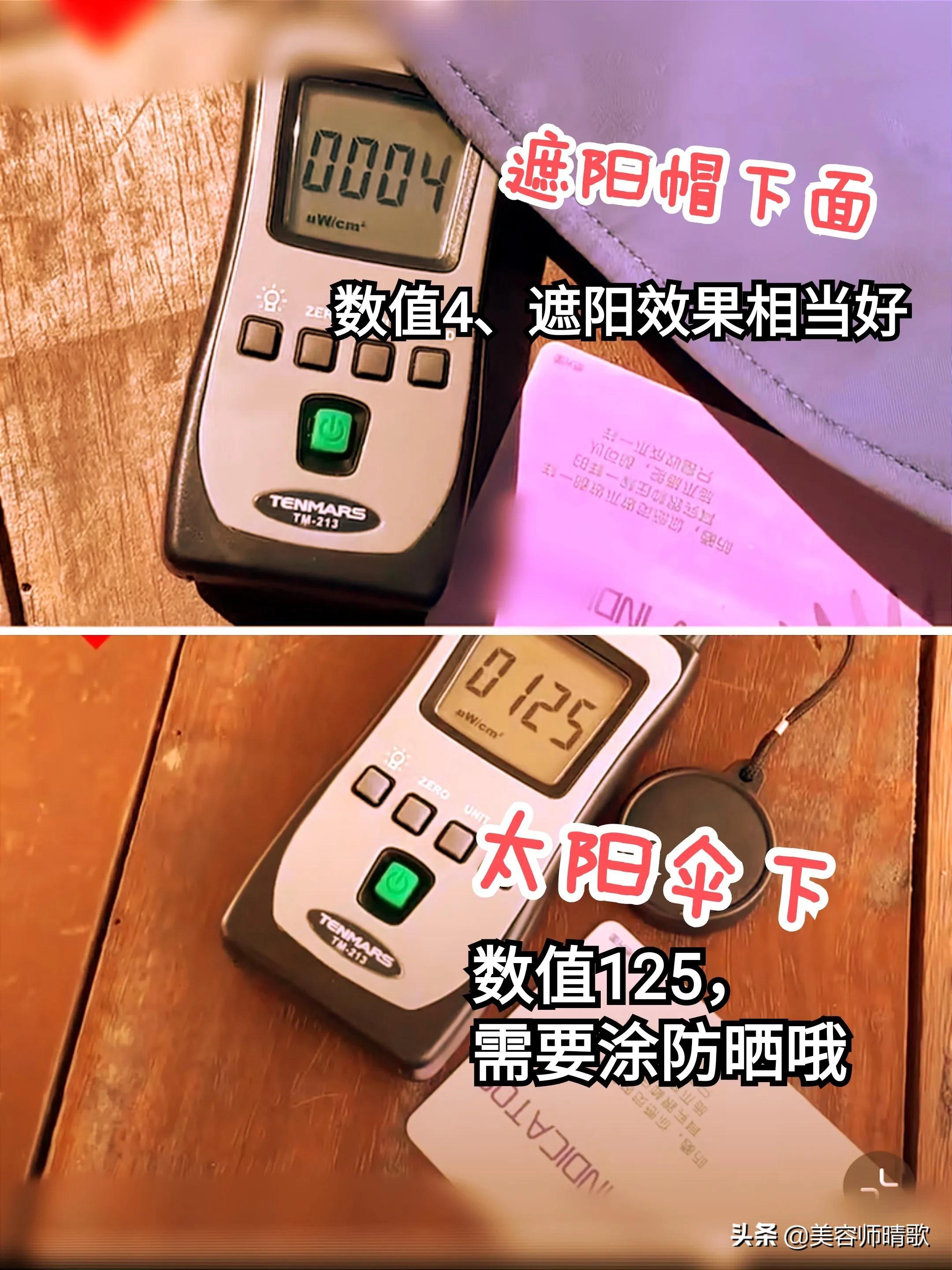 這組人工測量的數(shù)字,雖然有偏差,但也依舊能反應(yīng)出一個結(jié)論: 口罩、遮陽帽、太陽傘等硬防曬果,大于防曬霜!
