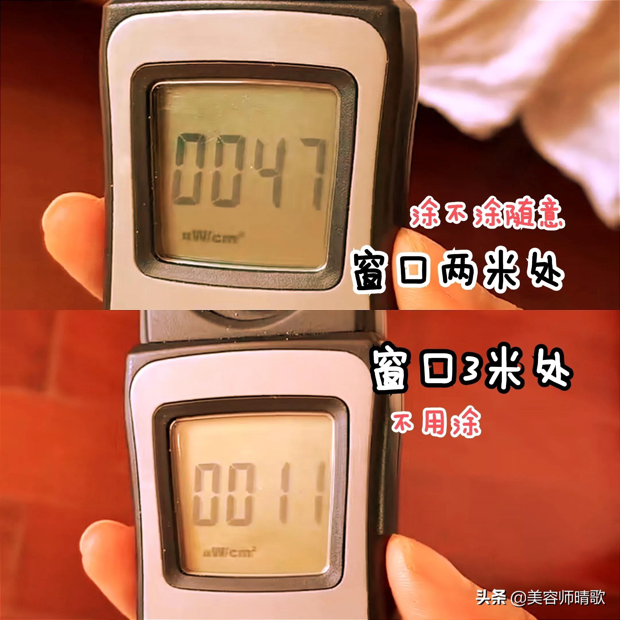 靠窗一米內(nèi),紫外線的數(shù)值都挺高,需要做好防曬措施。