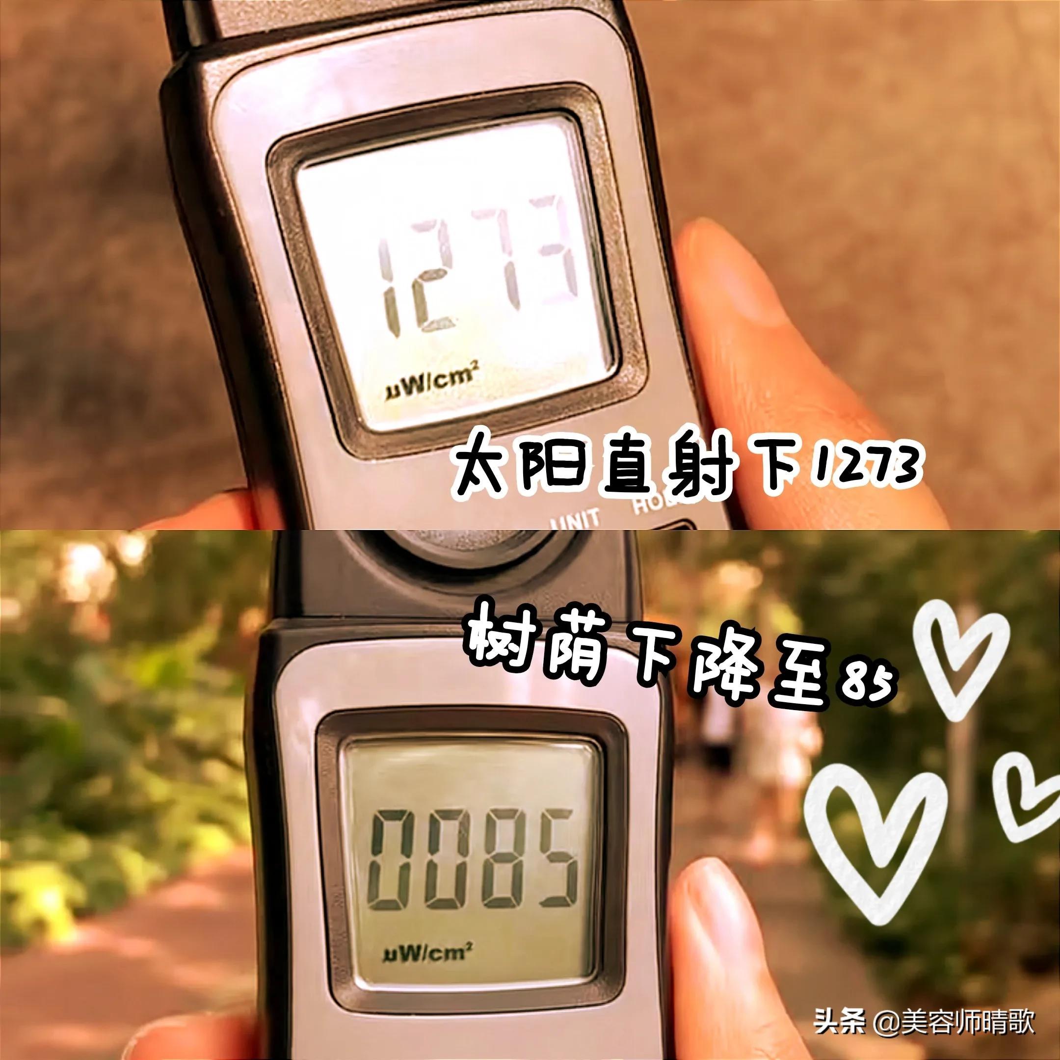 太陽直射下1273,往樹蔭底下降到了85,這個數(shù)據(jù)很讓人眼前一亮