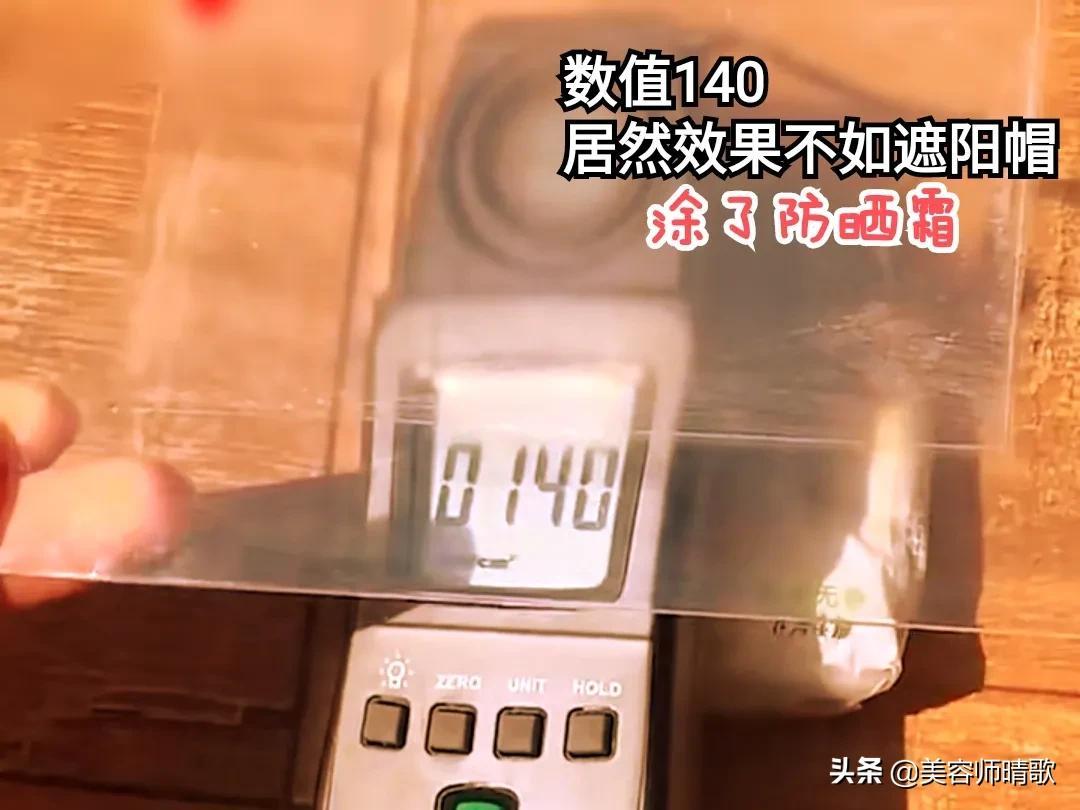 用涂了防曬霜的玻璃片測試,結(jié)果依舊有140的數(shù)值!相比上面的行防曬果差了一些呢!