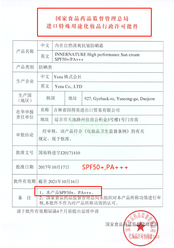 還找到了VN鉑金防曬霜藥監(jiān)局的許可證,3頁的成分表,除了滿滿的主要防曬成分,剩下的幾乎全是護膚養(yǎng)膚的成分。