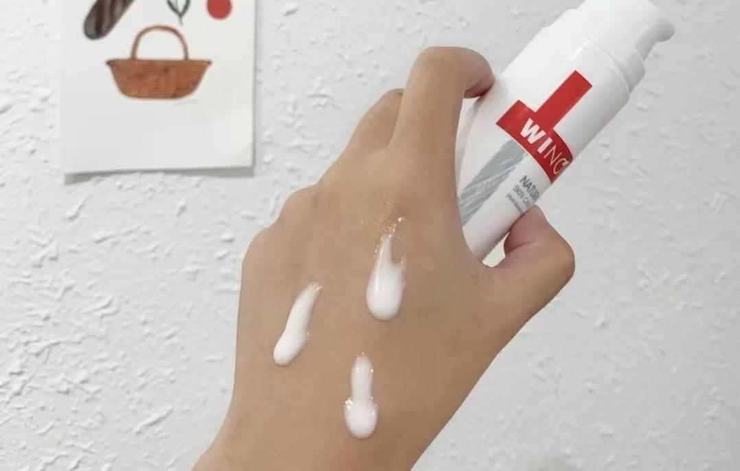 3.用指尖將各個部位的防曬霜輕輕涂勻