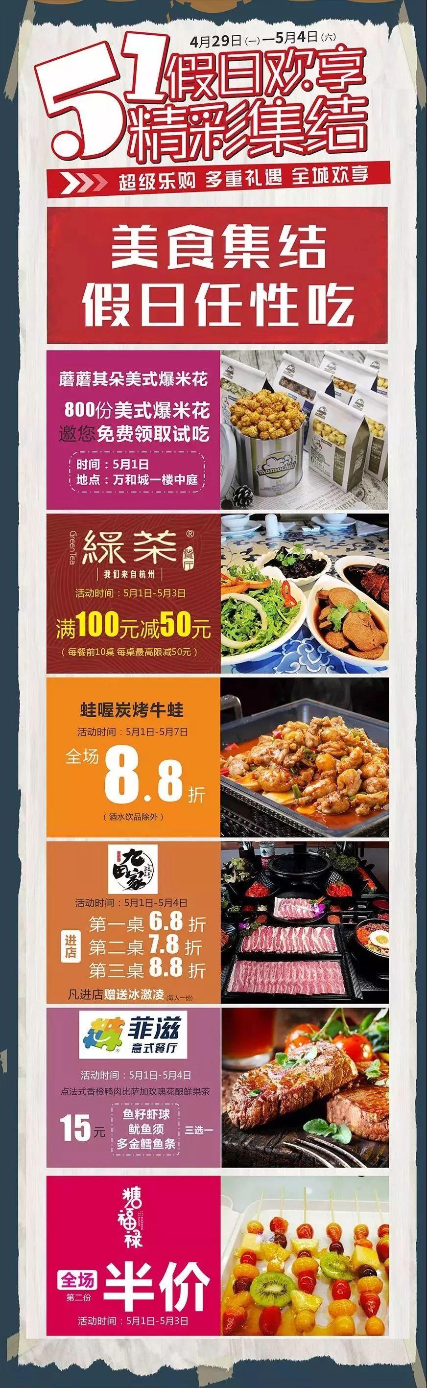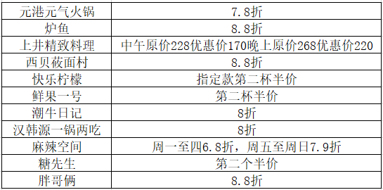 活動期間,以下餐飲推出餐飲實(shí)付滿百送百元活動。(5.1-5.4期間,顧客如若已使用過滿百送百券,實(shí)付滿100時(shí)將不再贈送)