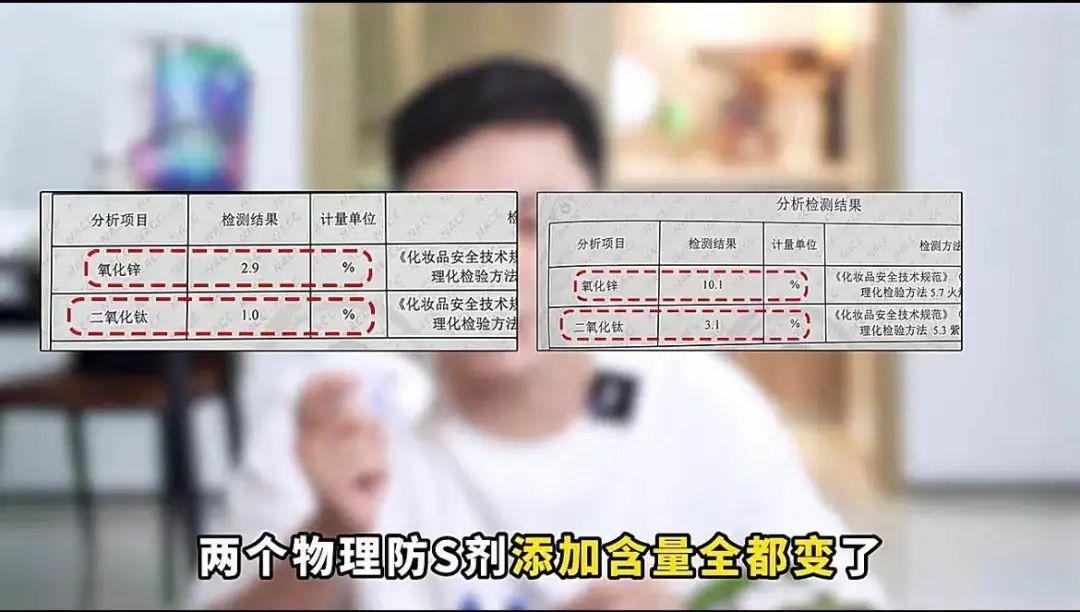與此同時,另一位小紅書護膚博主也發(fā)布了一則關(guān)于珀萊雅羽感防曬的視頻,稱其將不同批次的該產(chǎn)品送檢,結(jié)果顯示不同批次的兩種物理防曬劑添加含量都變了。據(jù)此,該博主對品牌提出“配方含量隨意改動”“加大物理防曬劑用量”“虛標(biāo)高倍數(shù)防曬”等質(zhì)疑。