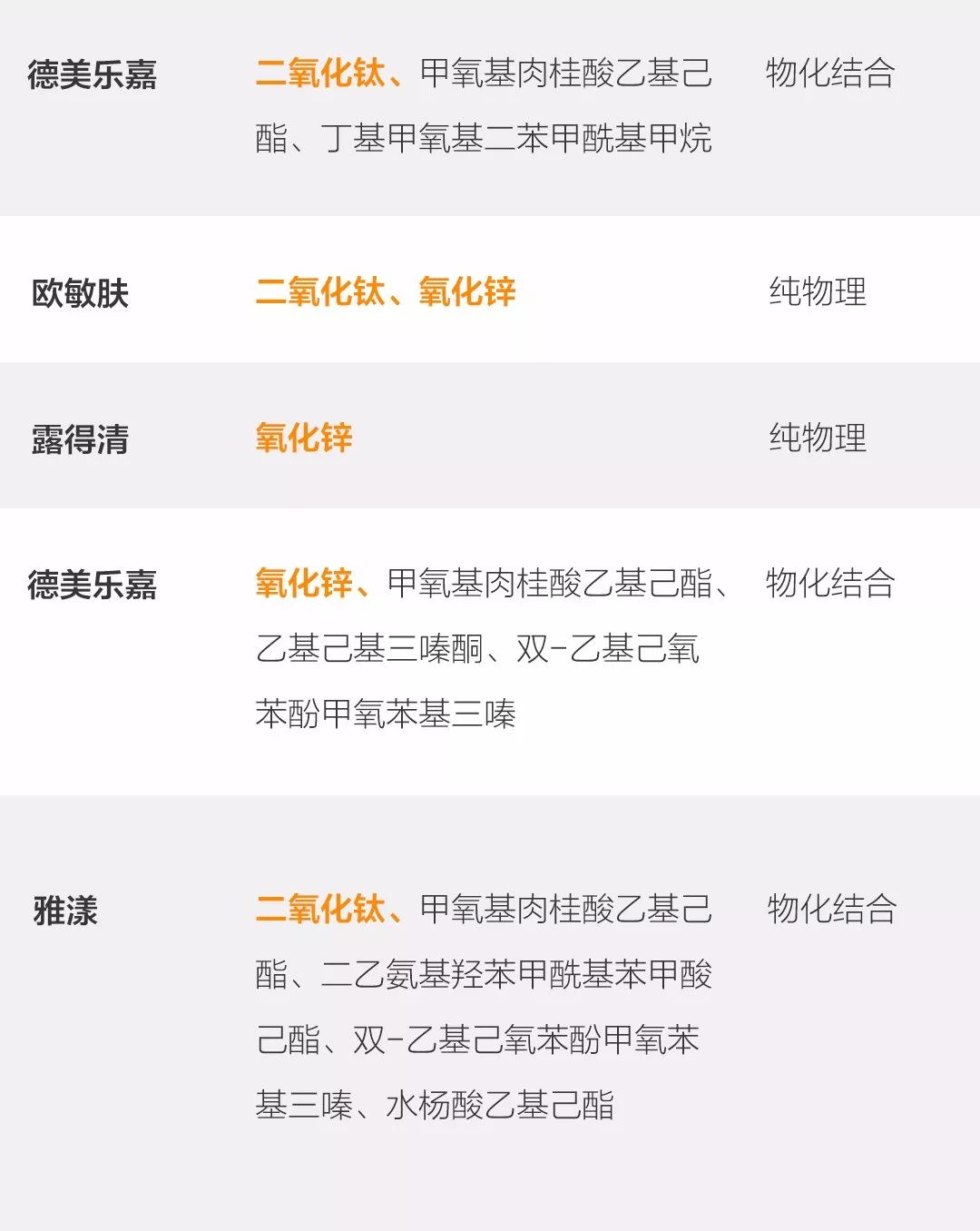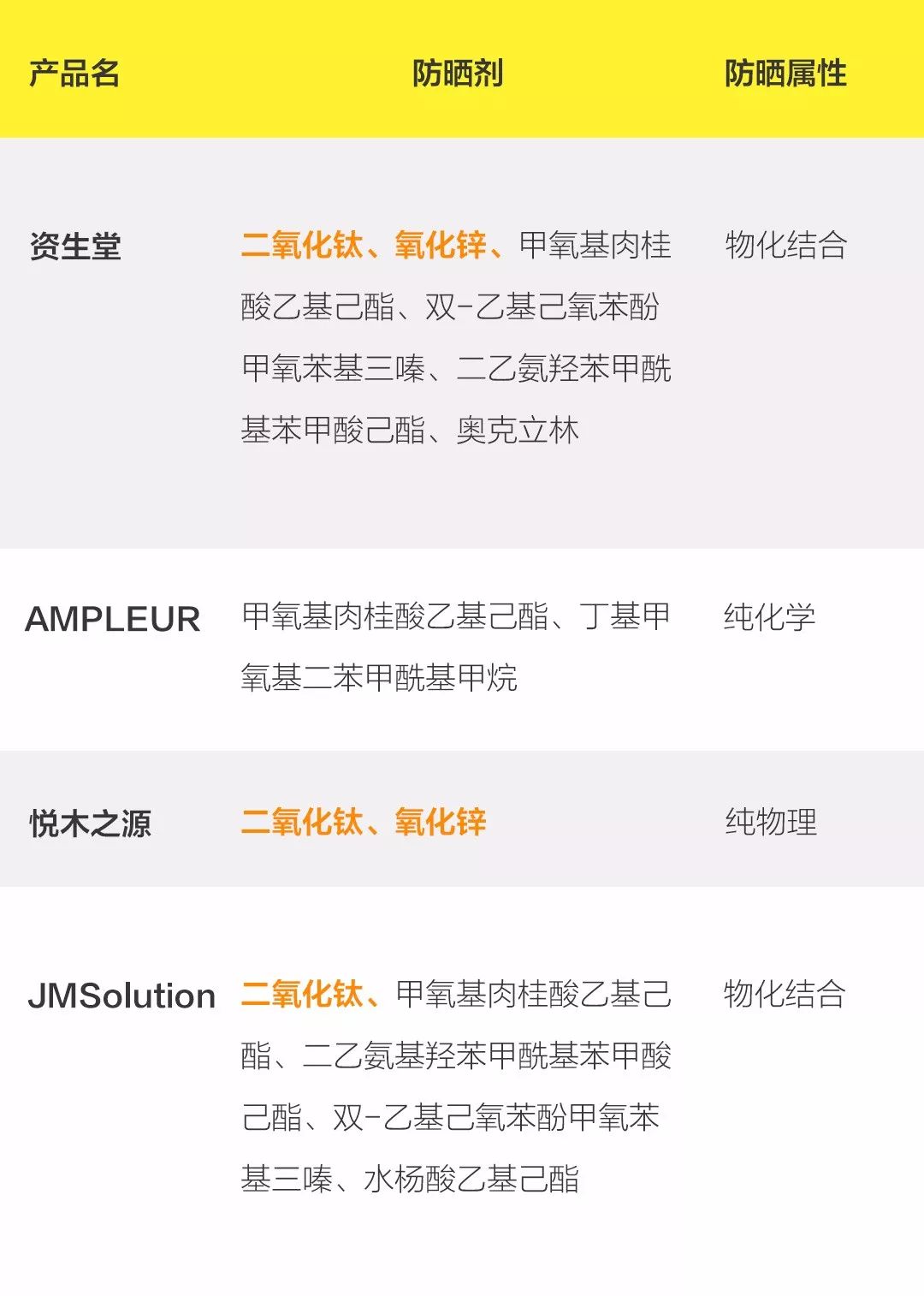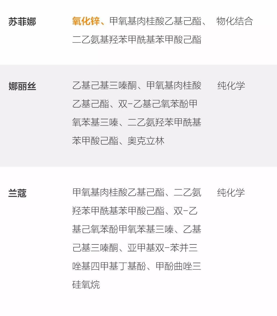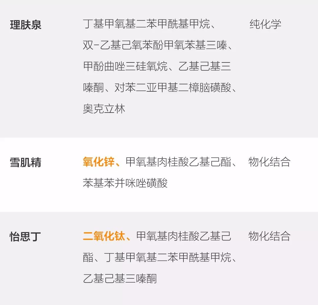 拓展知識(shí):防曬霜各品牌成分表圖片