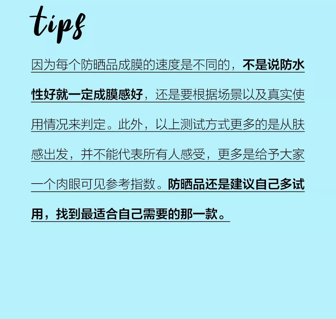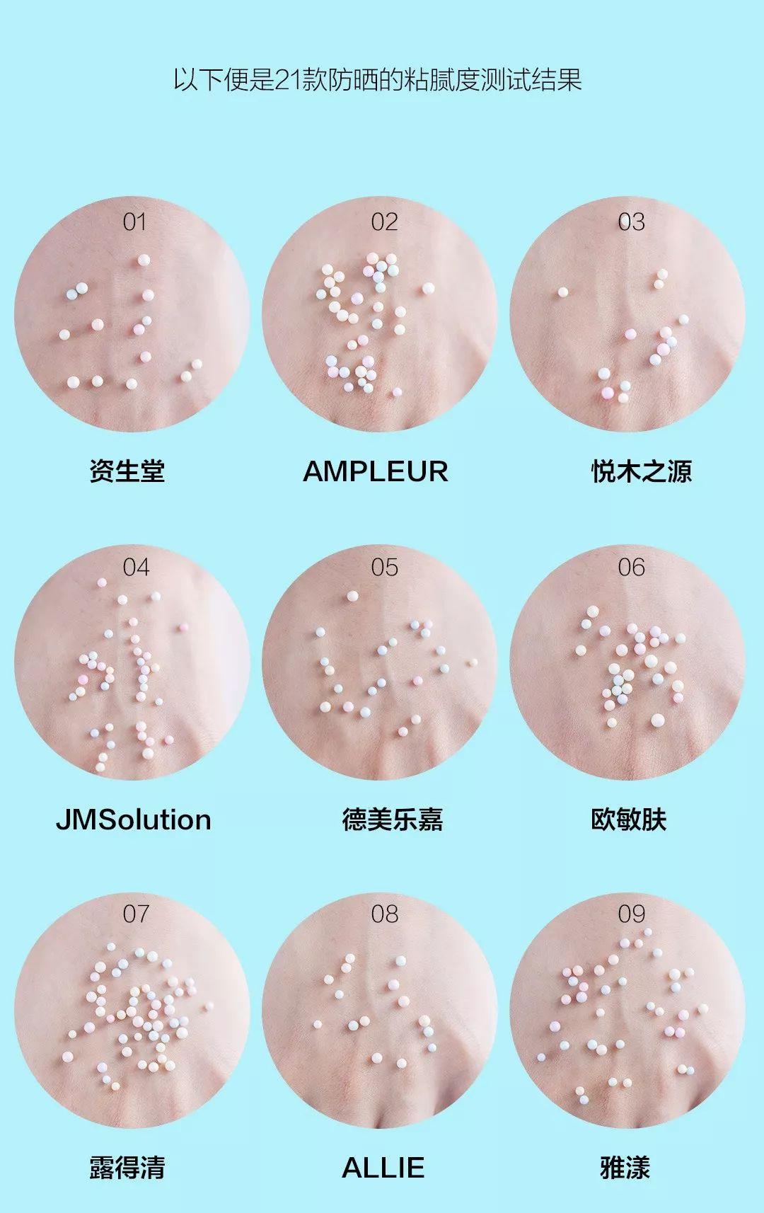 綜合粘膩度和質(zhì)地測(cè)試,可以看出搖搖樂(lè)類(lèi)的防曬霜整體清爽、不黏膩、吸收快(以資生堂、悅木之源、Fancl等為代表);而成膜感且好的,粘膩感也更一些(以JM、理膚泉等為代表)。純物理防曬(露得清)容易泛白,日系防曬(SOFINA、雪肌精)都帶有微微提亮的妝。
